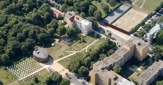 De grensovergang Drewitz bij Berlijn is met de grond gelijk gemaakt.