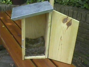 . Het nestkastje is vanaf de zijkant te openen.